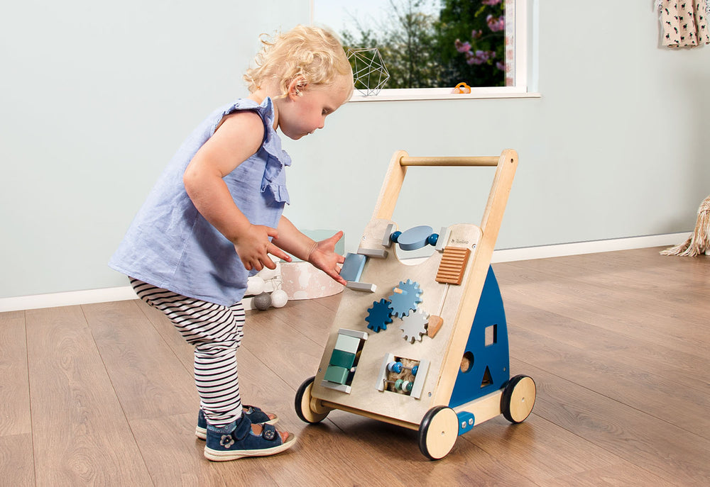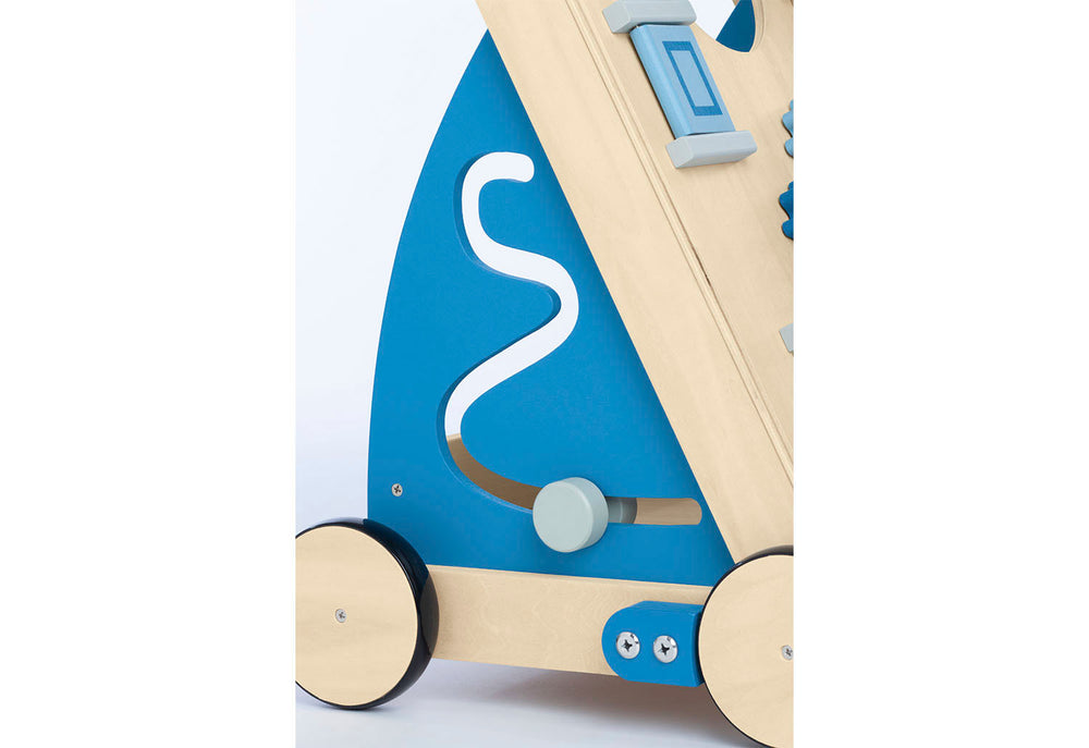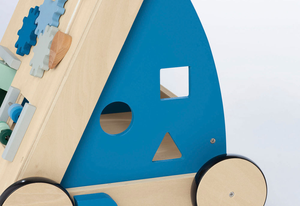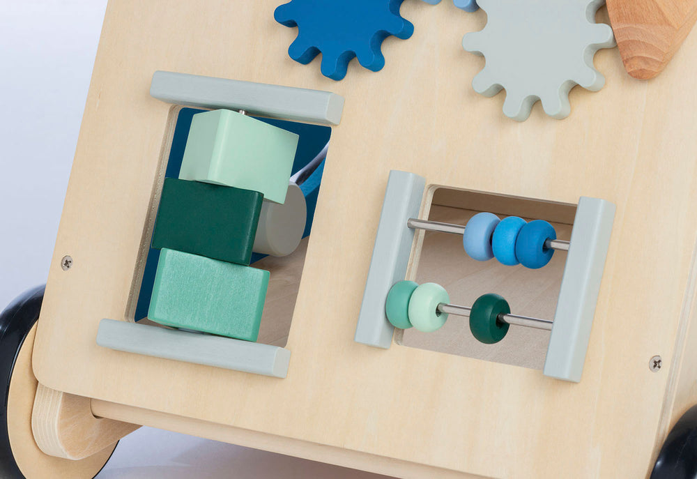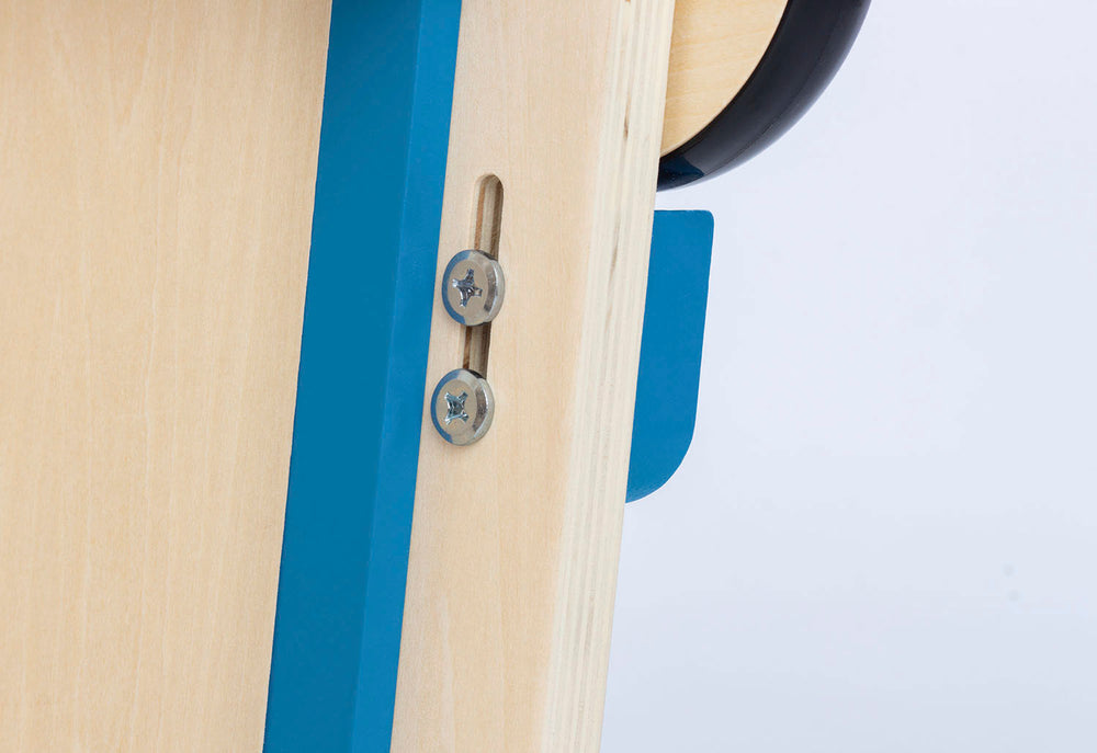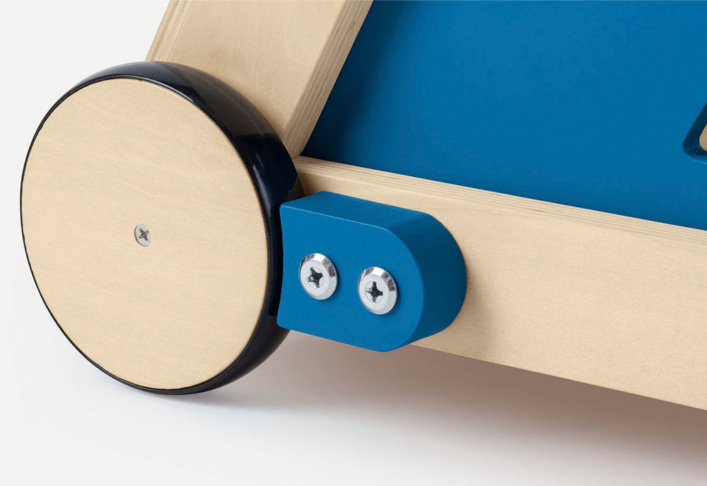 • Roues en bois caoutchoutées, essieux en bois
