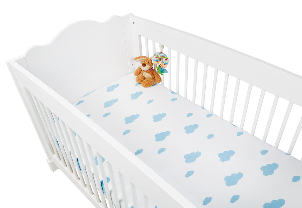 • Jersey, motif 'Nuages', bleu clair et uni, blanc