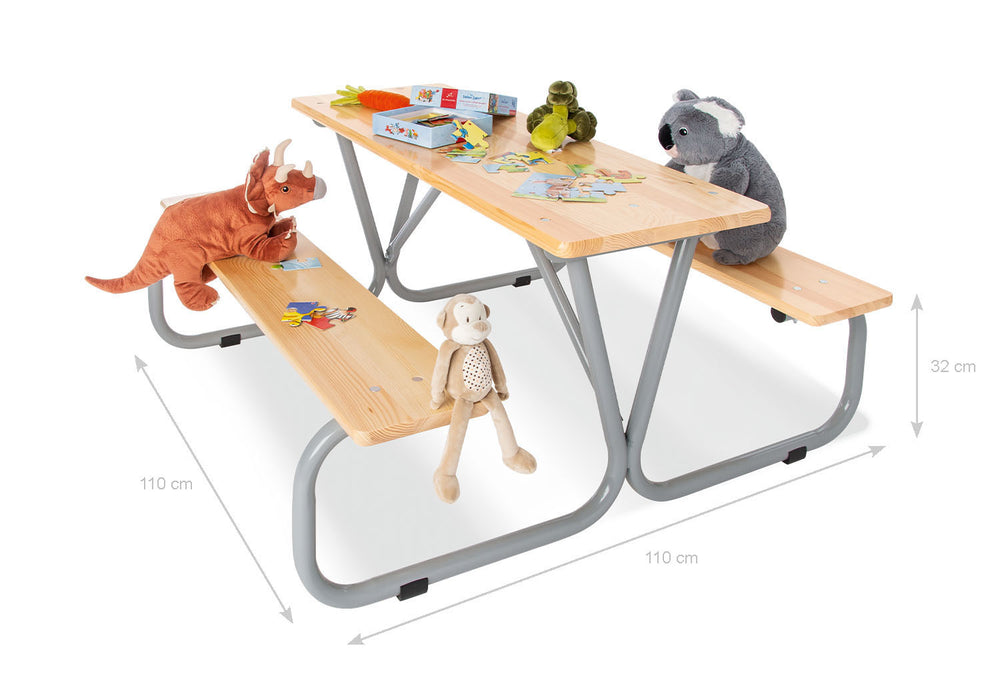 • Massif : Pin, vernis transparent et métal, vernis gris
