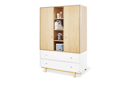 • 2 portes, 2 tiroirs avec compartiments à linge à 2 voies, 4 compartiments ouverts