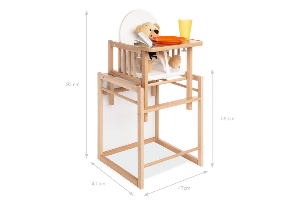 | Hauteur du siège | En chaise haute 59 cm, en chaise 24 cm |