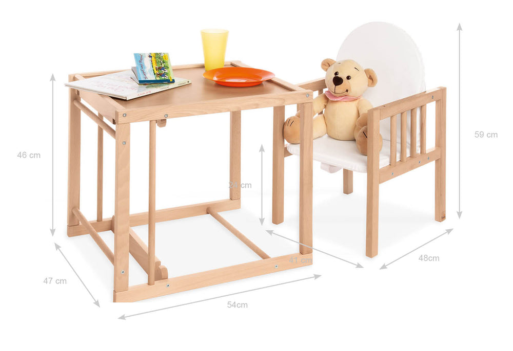 • Peut être converti en une combinaison chaise-table, hauteur d'assise alors 24 cm