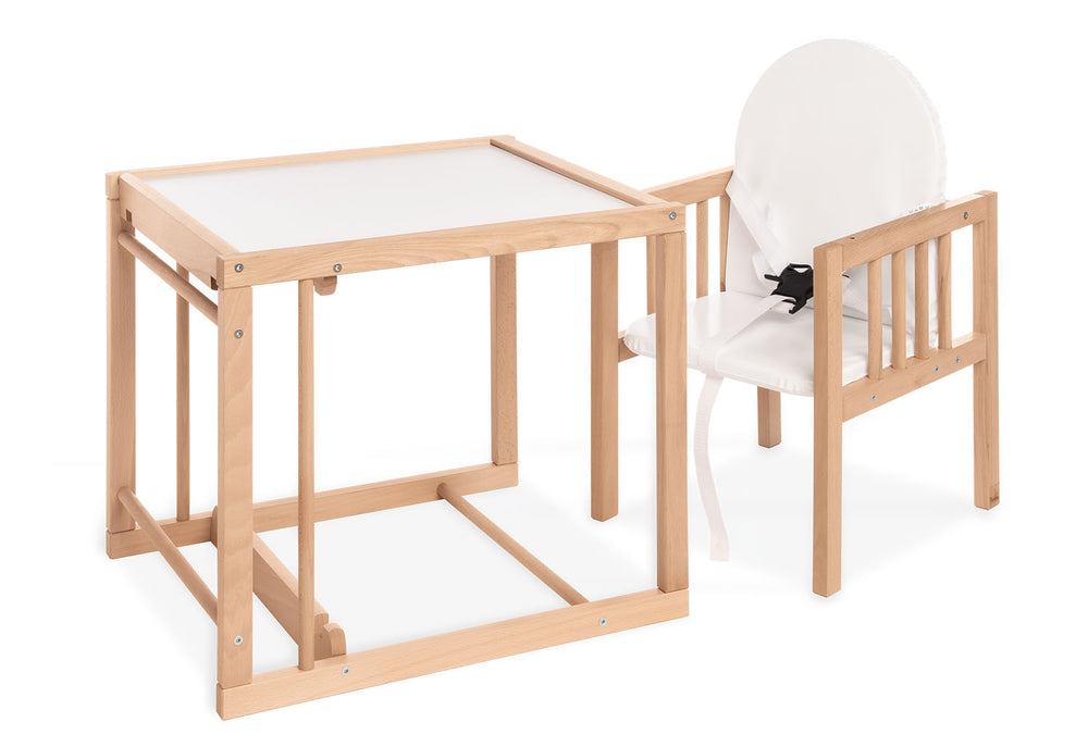 | Capacité de charge maximale | 15 kg (chaise haute avec ceinture) ; 20 kg (chaise séparée) ; 30 kg (table séparée) |