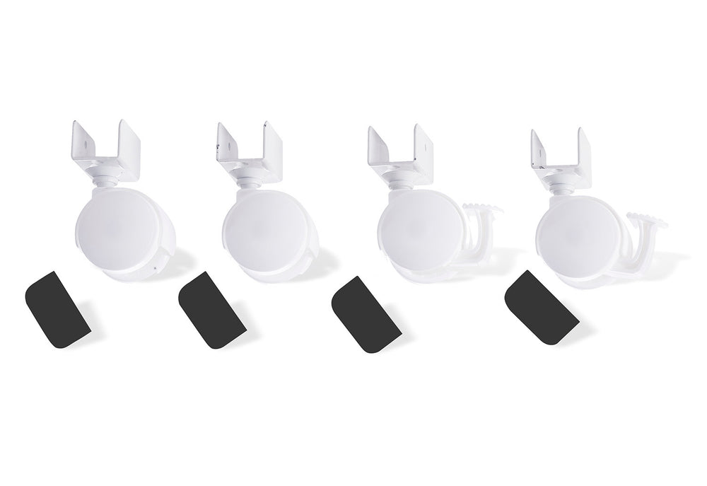 • 4 roulettes pivotantes blanches, dont 2 avec fonction frein